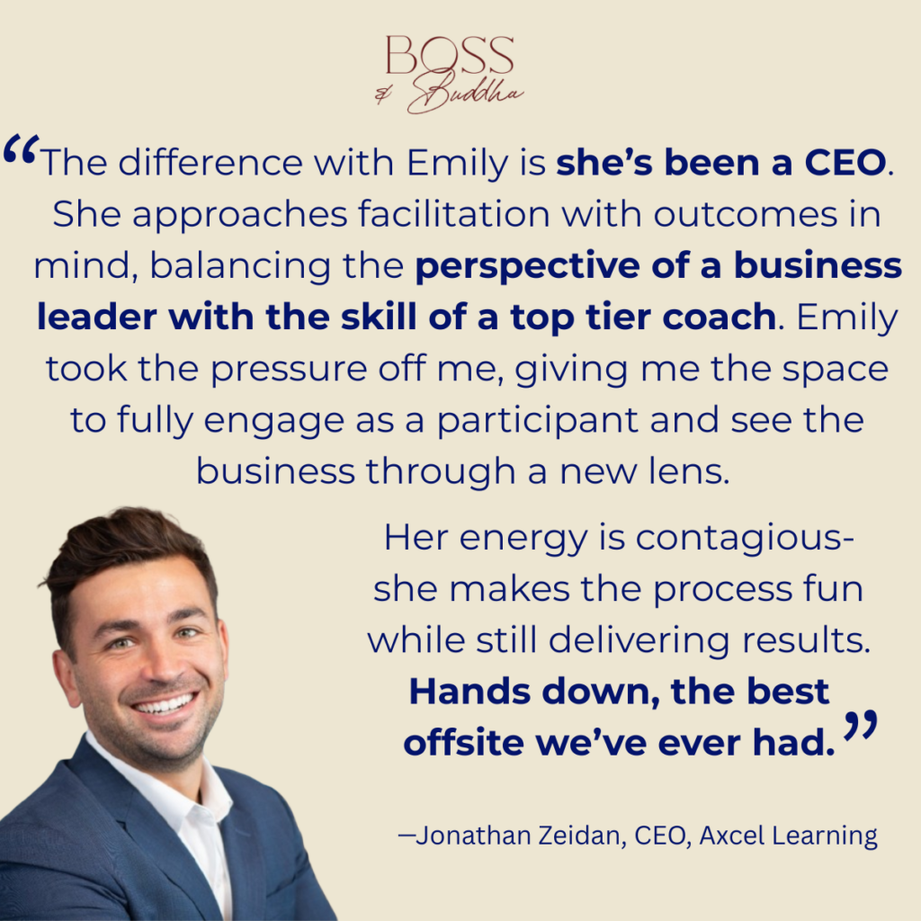 Because I’ve been a CEO myself, I design offsites with outcomes in mind. Together with Jonathan and executive team, we co-created an agenda that: